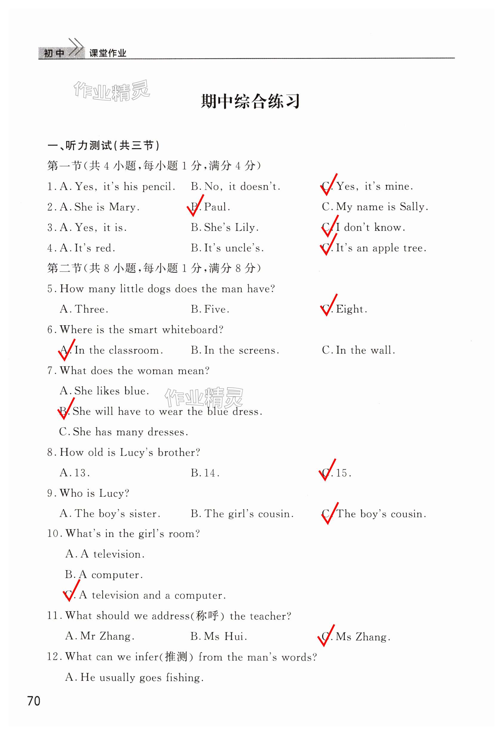 注:目前有些书本章节名称可能整理的还不是很完善,但都是按照顺序排列的,请同学们按照顺序仔细查找。练习册 2024年课堂作业武汉出版社七年级英语上册人教版 答案主要是用来给同学们做完题方便对答案用的,请勿直接抄袭。