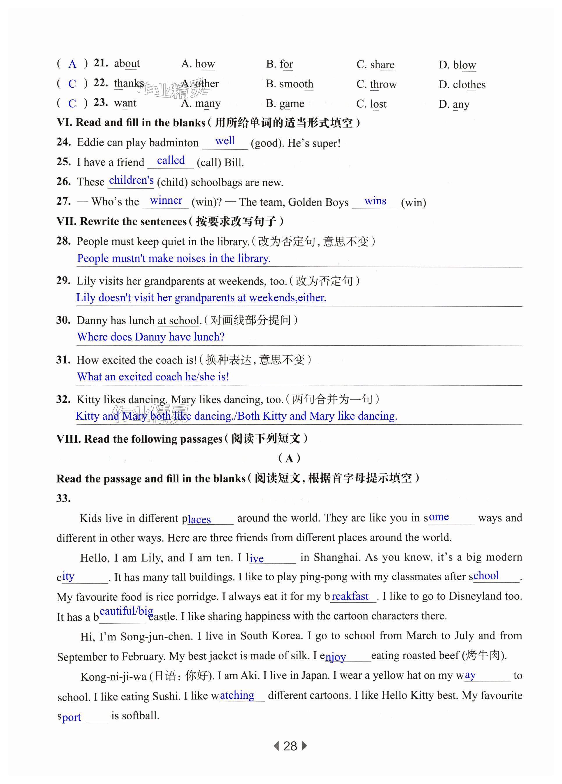 注:目前有些书本章节名称可能整理的还不是很完善,但都是按照顺序排列的,请同学们按照顺序仔细查找。练习册 2024年华东师大版一课一练五年级英语上册沪教版54制 答案主要是用来给同学们做完题方便对答案用的,请勿直接抄袭。
