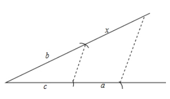 $解:由ab=cx得c:a=b:x,作出c、a、b、x的第四比例项得到x,如图:$