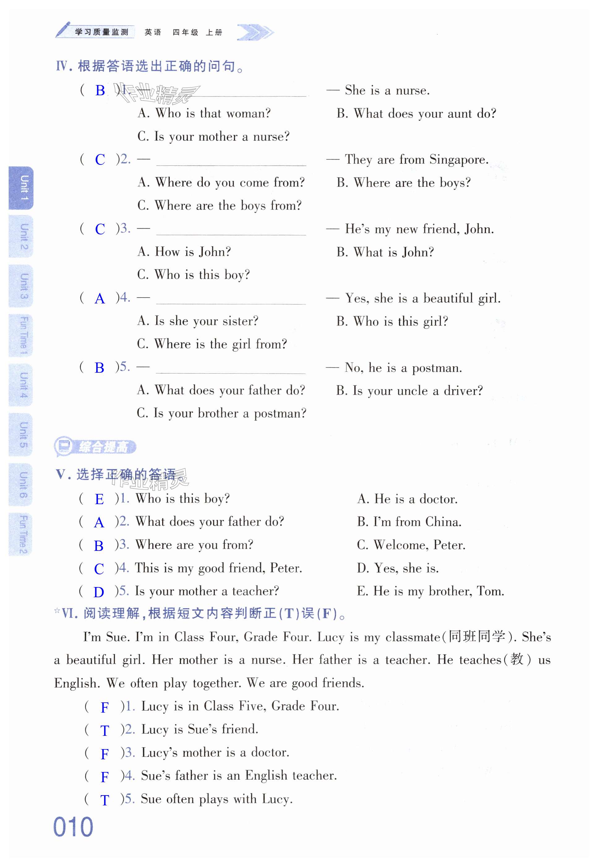 注:目前有些书本章节名称可能整理的还不是很完善,但都是按照顺序排列的,请同学们按照顺序仔细查找。练习册 2024年学习质量监测四年级英语上册人教版 答案主要是用来给同学们做完题方便对答案用的,请勿直接抄袭。