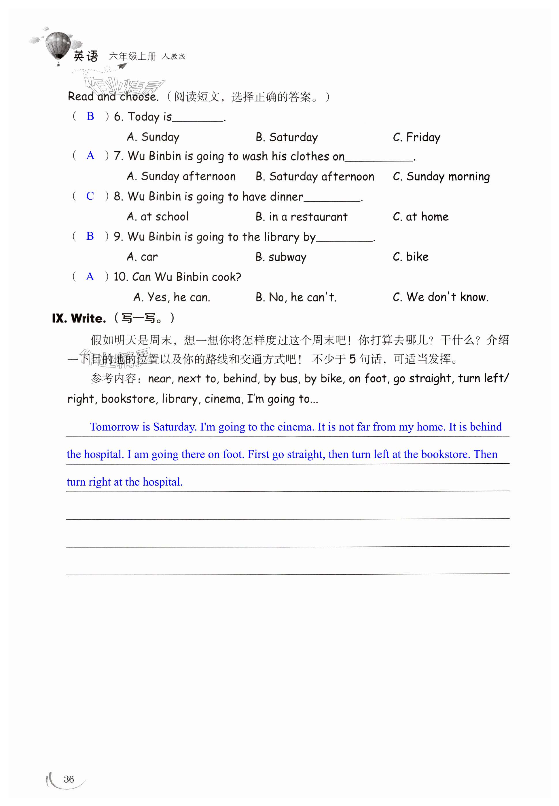 注:目前有些书本章节名称可能整理的还不是很完善,但都是按照顺序排列的,请同学们按照顺序仔细查找。练习册 2024年同步练习册山东科学技术出版社六年级英语上册人教版 答案主要是用来给同学们做完题方便对答案用的,请勿直接抄袭。