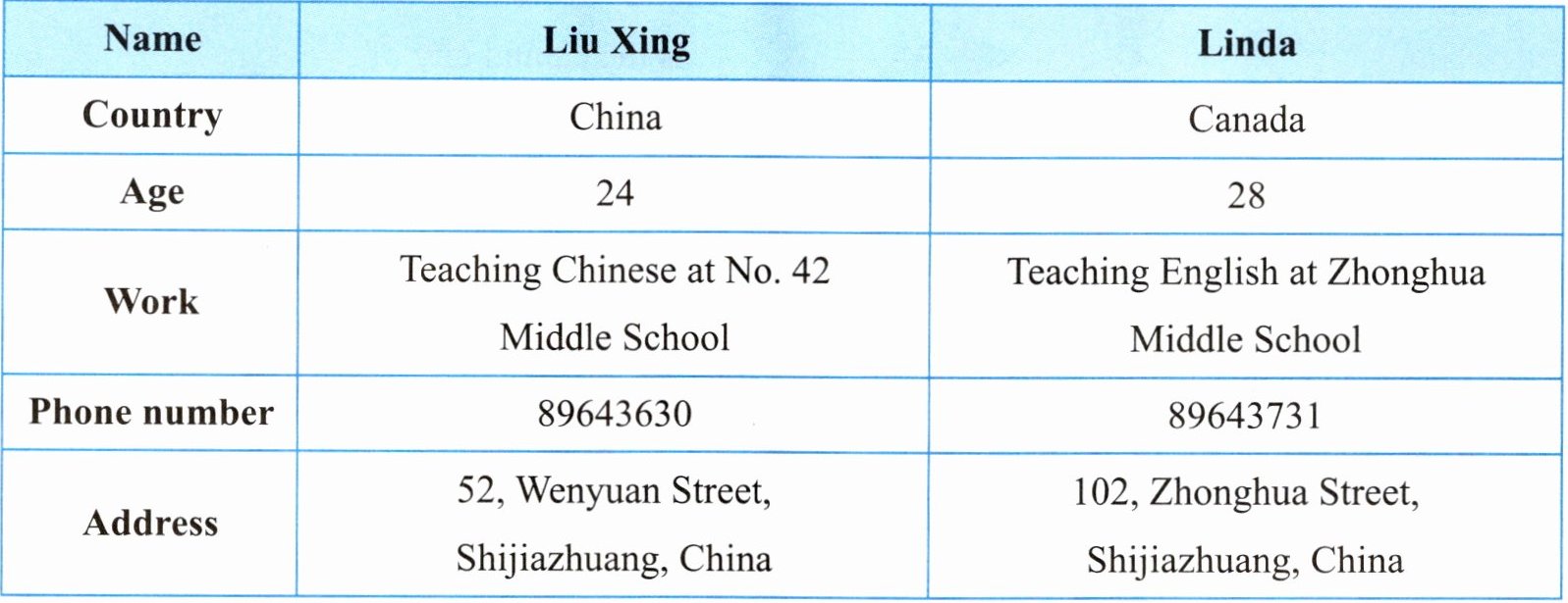 ( ) 3. Liu Xing is ______ Linda.