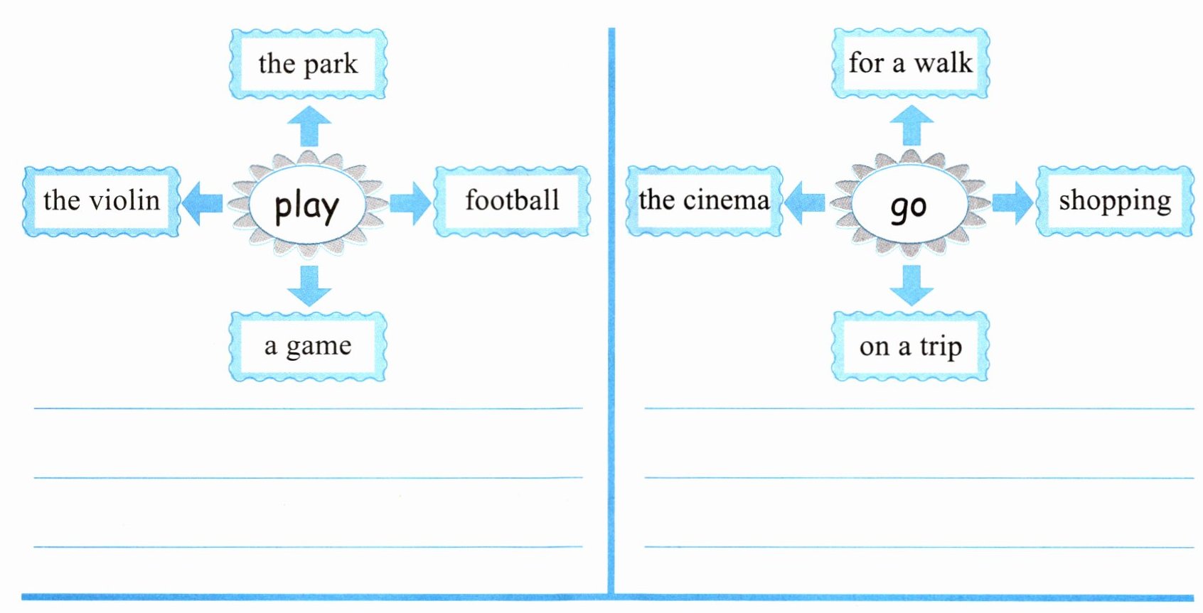 接下来,任意选择三个短语,写三个句子吧。______