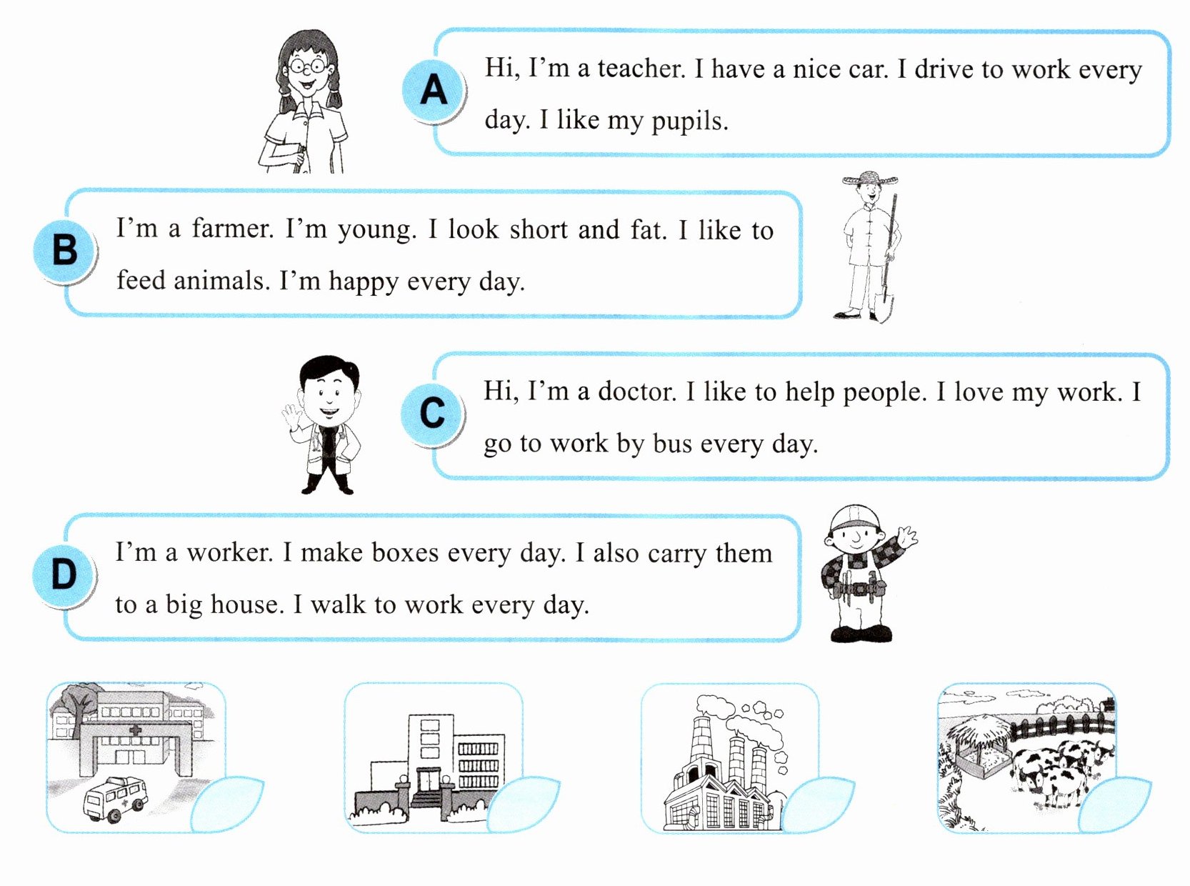 Ⅲ. Read and match. 读短文,为每个人安排合适的工作地点吧。