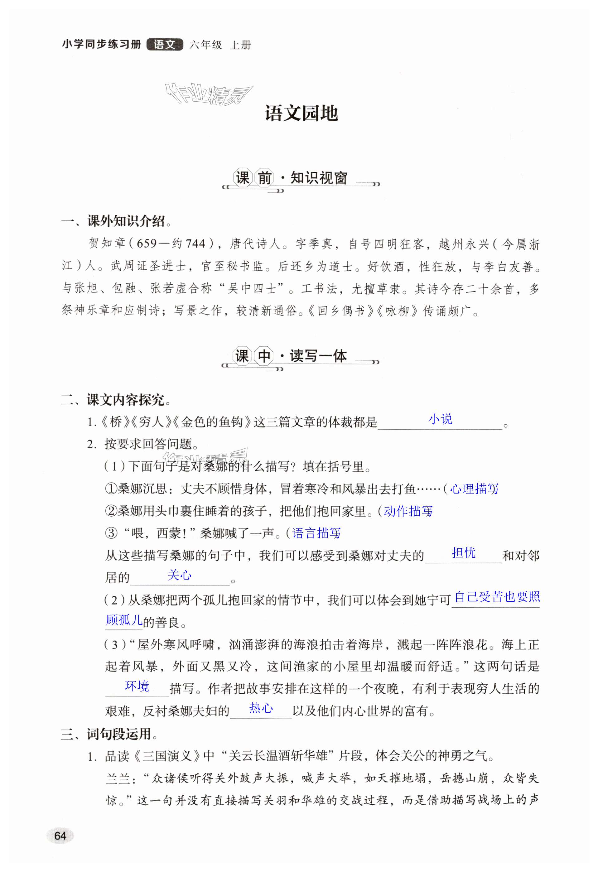 注:目前有些书本章节名称可能整理的还不是很完善,但都是按照顺序排列的,请同学们按照顺序仔细查找。练习册 2024年同步练习册山东人民出版社六年级语文上册人教版 答案主要是用来给同学们做完题方便对答案用的,请勿直接抄袭。