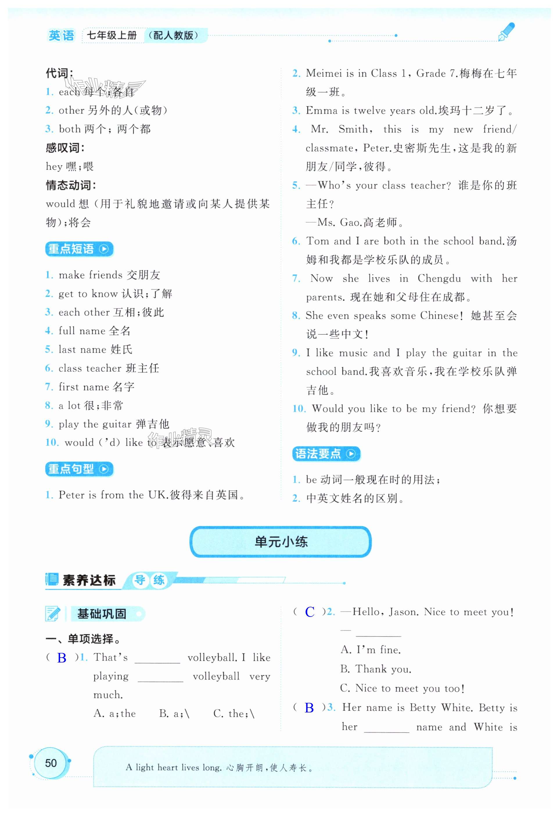 注:目前有些书本章节名称可能整理的还不是很完善,但都是按照顺序排列的,请同学们按照顺序仔细查找。练习册 2024年新课程学习与测评同步学习七年级英语上册人教版 答案主要是用来给同学们做完题方便对答案用的,请勿直接抄袭。
