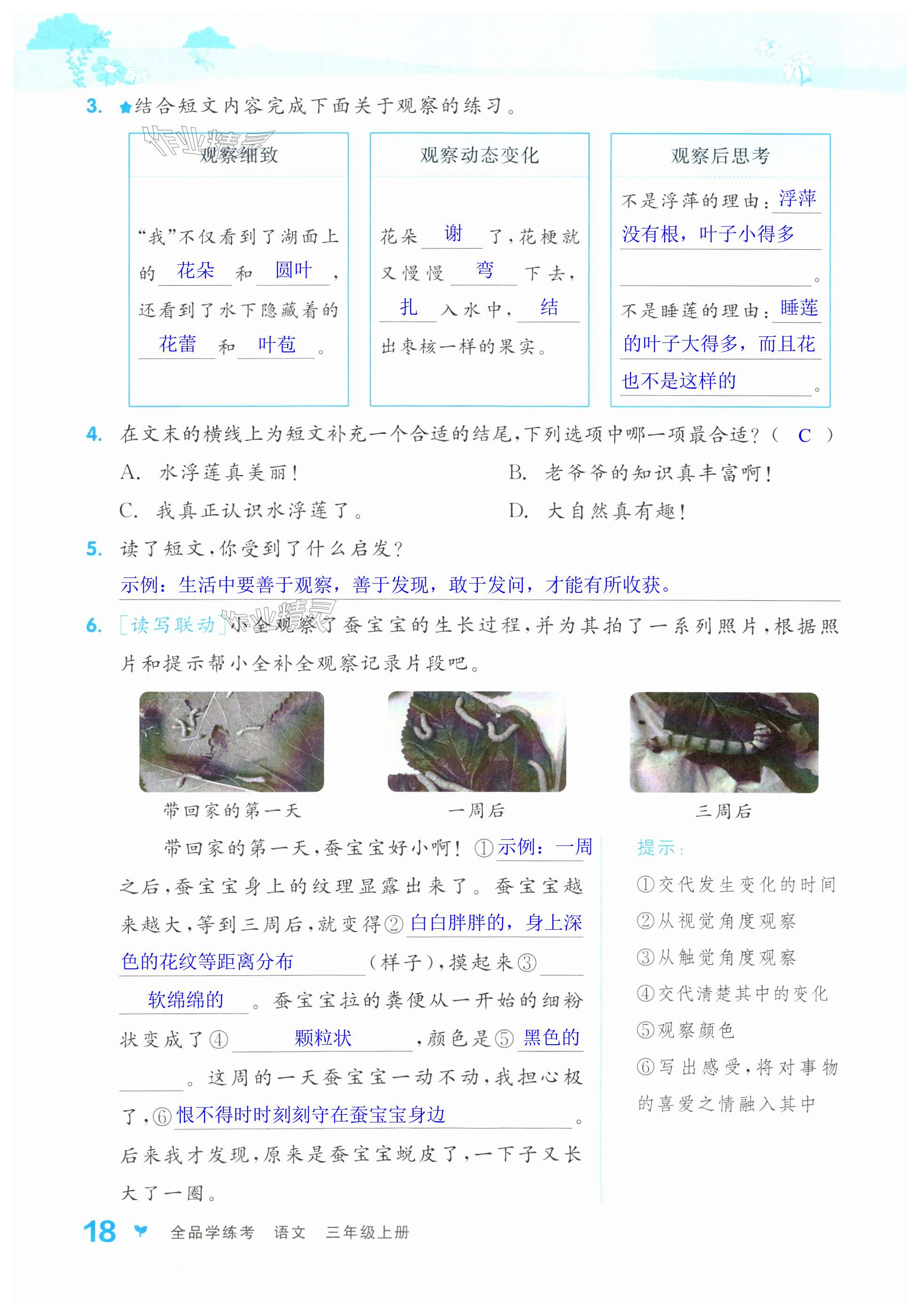 注:目前有些书本章节名称可能整理的还不是很完善,但都是按照顺序排列的,请同学们按照顺序仔细查找。练习册 2024年全品学练考三年级语文上册人教版浙江专版 答案主要是用来给同学们做完题方便对答案用的,请勿直接抄袭。