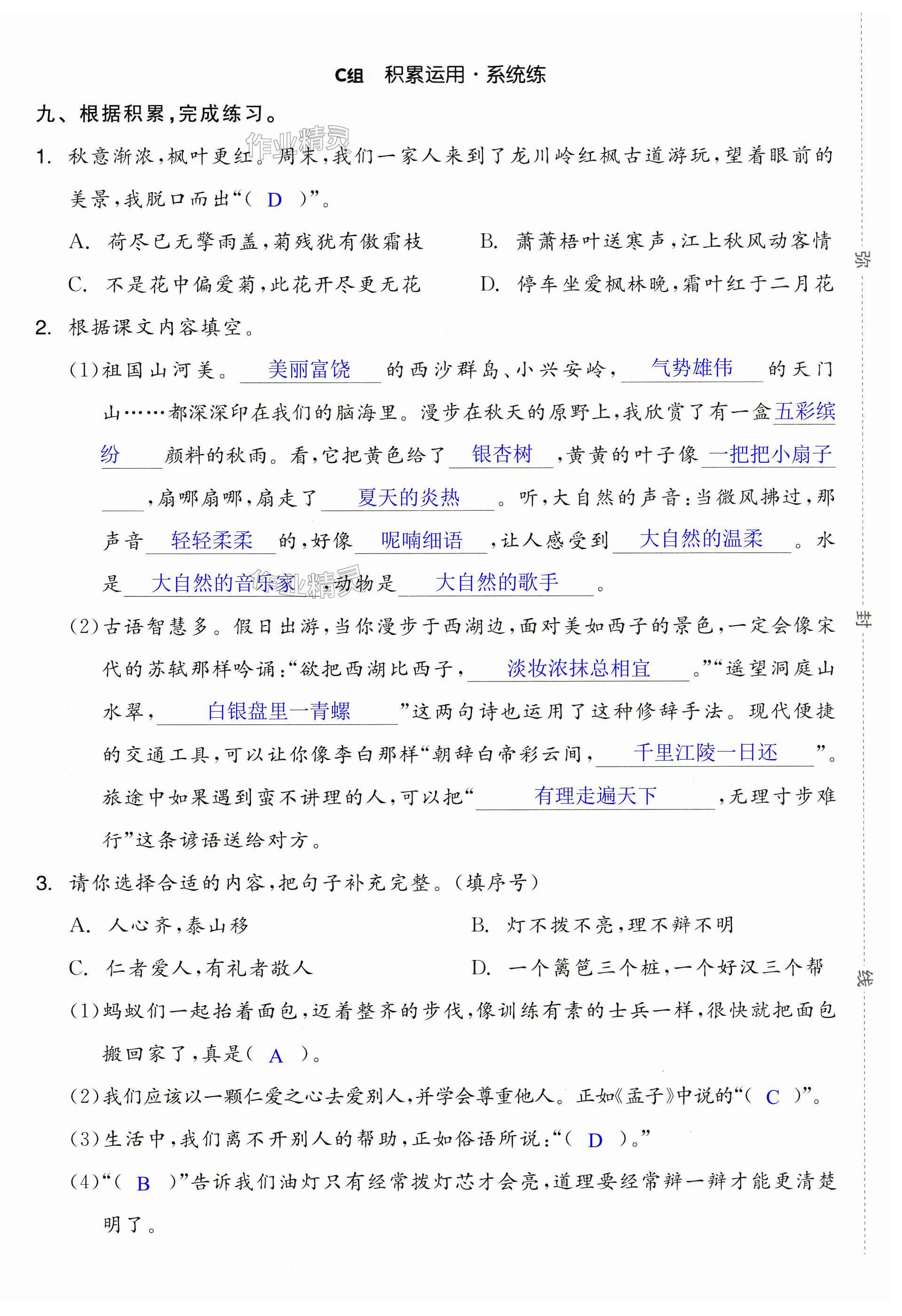 注:目前有些书本章节名称可能整理的还不是很完善,但都是按照顺序排列的,请同学们按照顺序仔细查找。练习册 2024年全品学练考三年级语文上册人教版浙江专版 答案主要是用来给同学们做完题方便对答案用的,请勿直接抄袭。