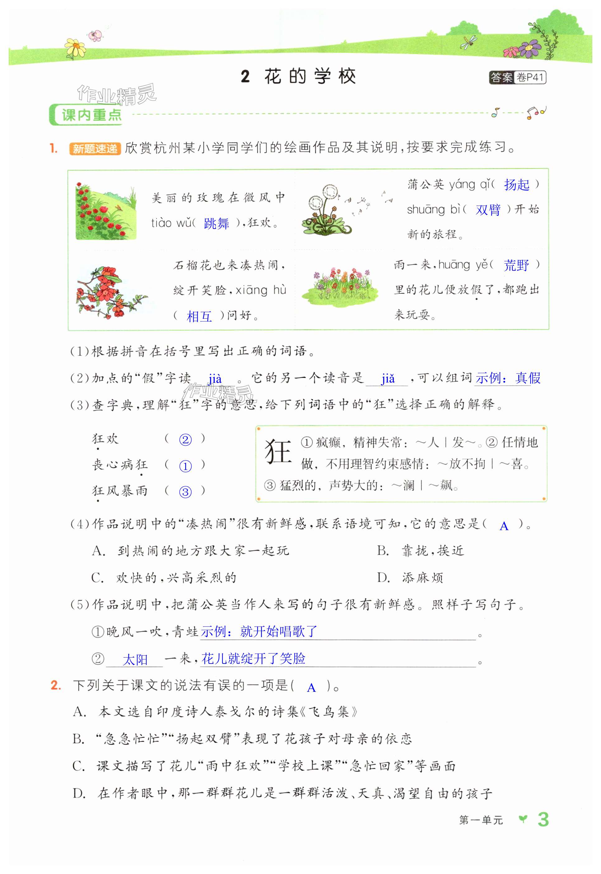 注:目前有些书本章节名称可能整理的还不是很完善,但都是按照顺序排列的,请同学们按照顺序仔细查找。练习册 2024年全品学练考三年级语文上册人教版浙江专版 答案主要是用来给同学们做完题方便对答案用的,请勿直接抄袭。