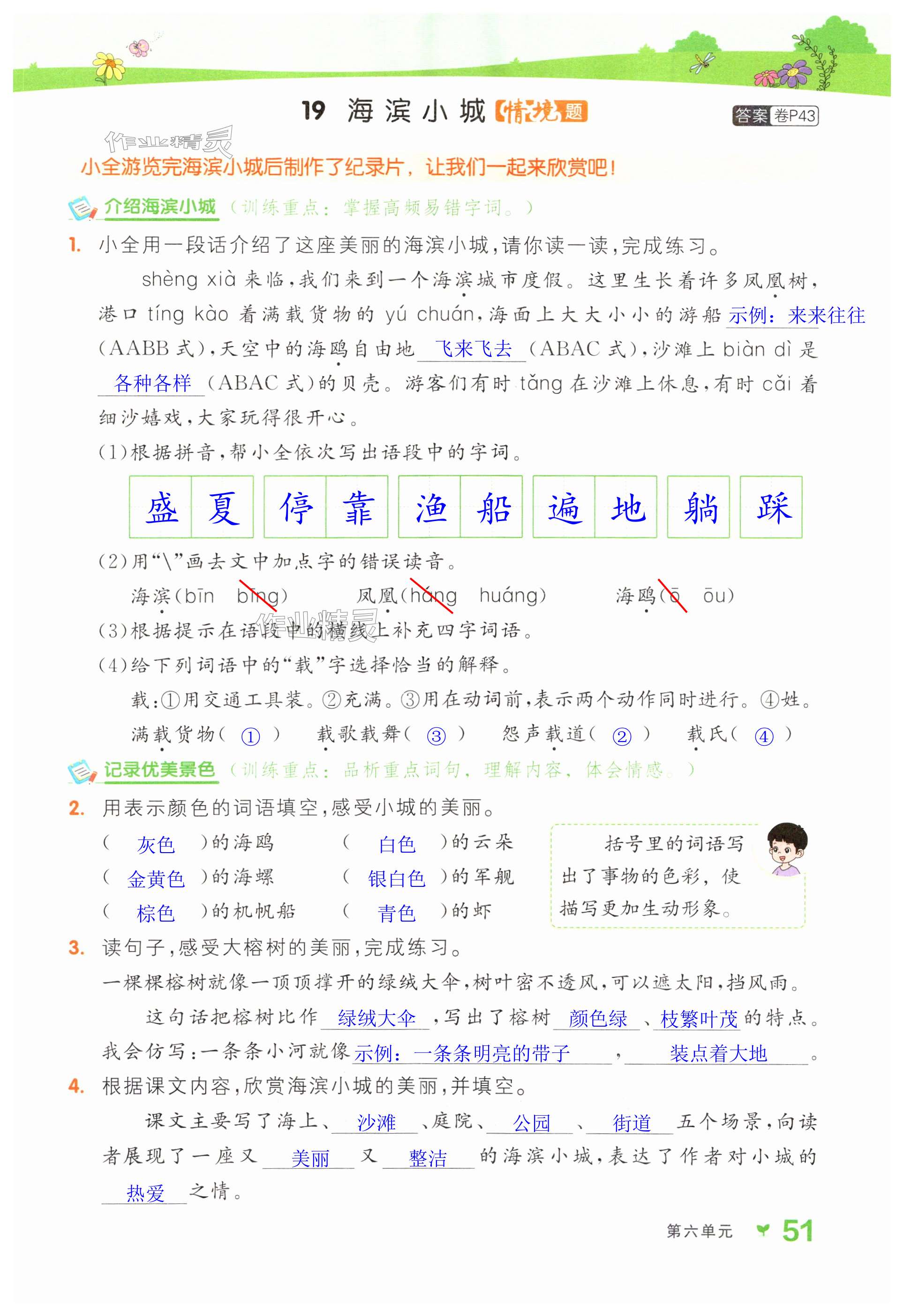 注:目前有些书本章节名称可能整理的还不是很完善,但都是按照顺序排列的,请同学们按照顺序仔细查找。练习册 2024年全品学练考三年级语文上册人教版浙江专版 答案主要是用来给同学们做完题方便对答案用的,请勿直接抄袭。