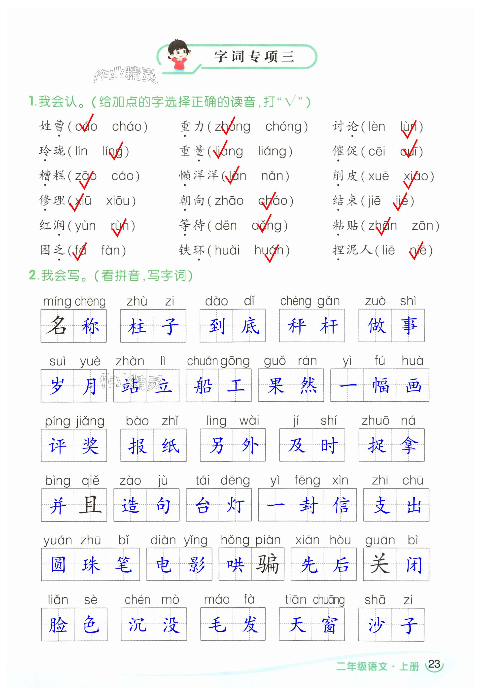 注:目前有些书本章节名称可能整理的还不是很完善,但都是按照顺序排列的,请同学们按照顺序仔细查找。练习册 2024年状元成才路创优作业100分二年级语文上册人教版浙江专版 答案主要是用来给同学们做完题方便对答案用的,请勿直接抄袭。
