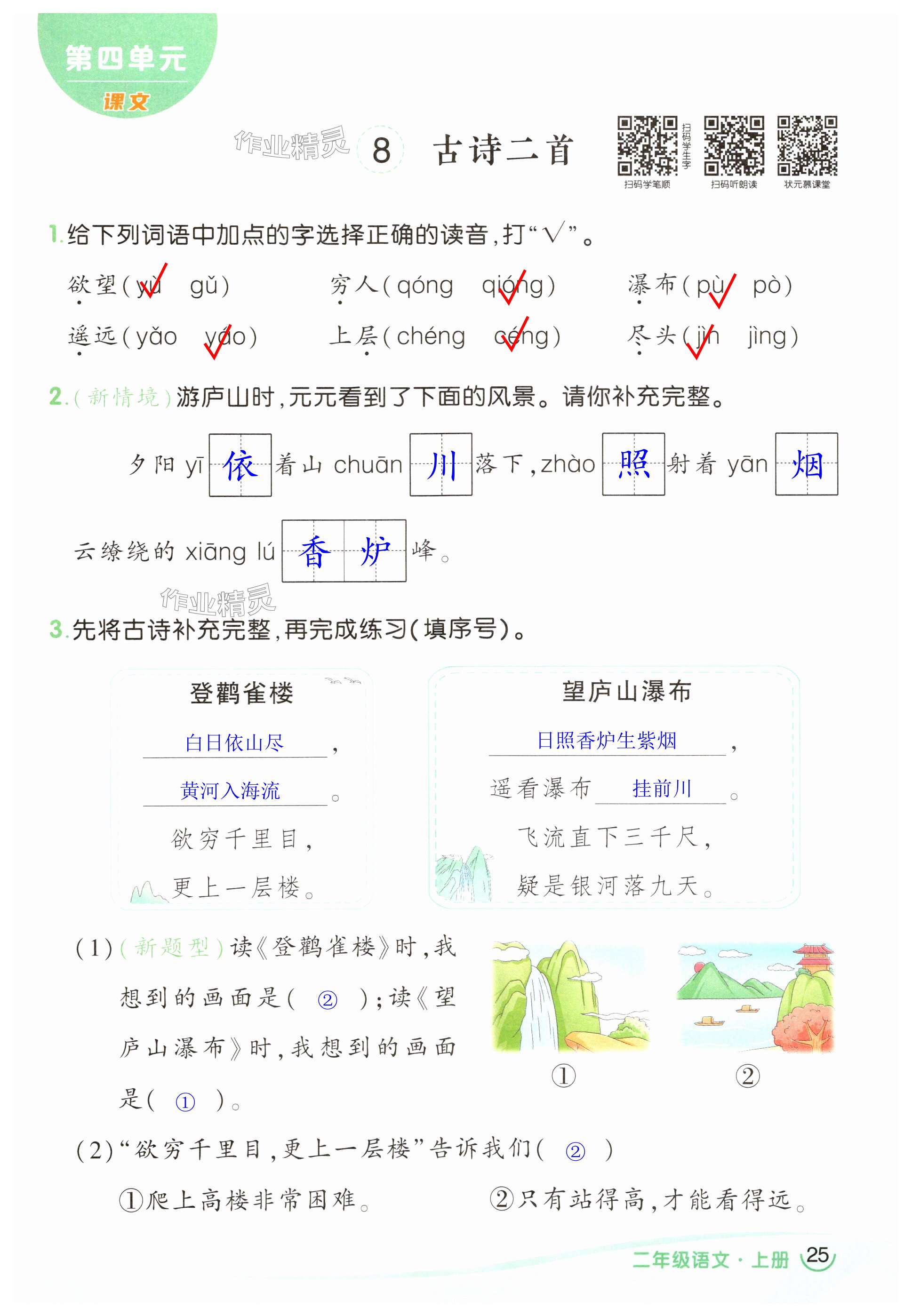注:目前有些书本章节名称可能整理的还不是很完善,但都是按照顺序排列的,请同学们按照顺序仔细查找。练习册 2024年状元成才路创优作业100分二年级语文上册人教版浙江专版 答案主要是用来给同学们做完题方便对答案用的,请勿直接抄袭。
