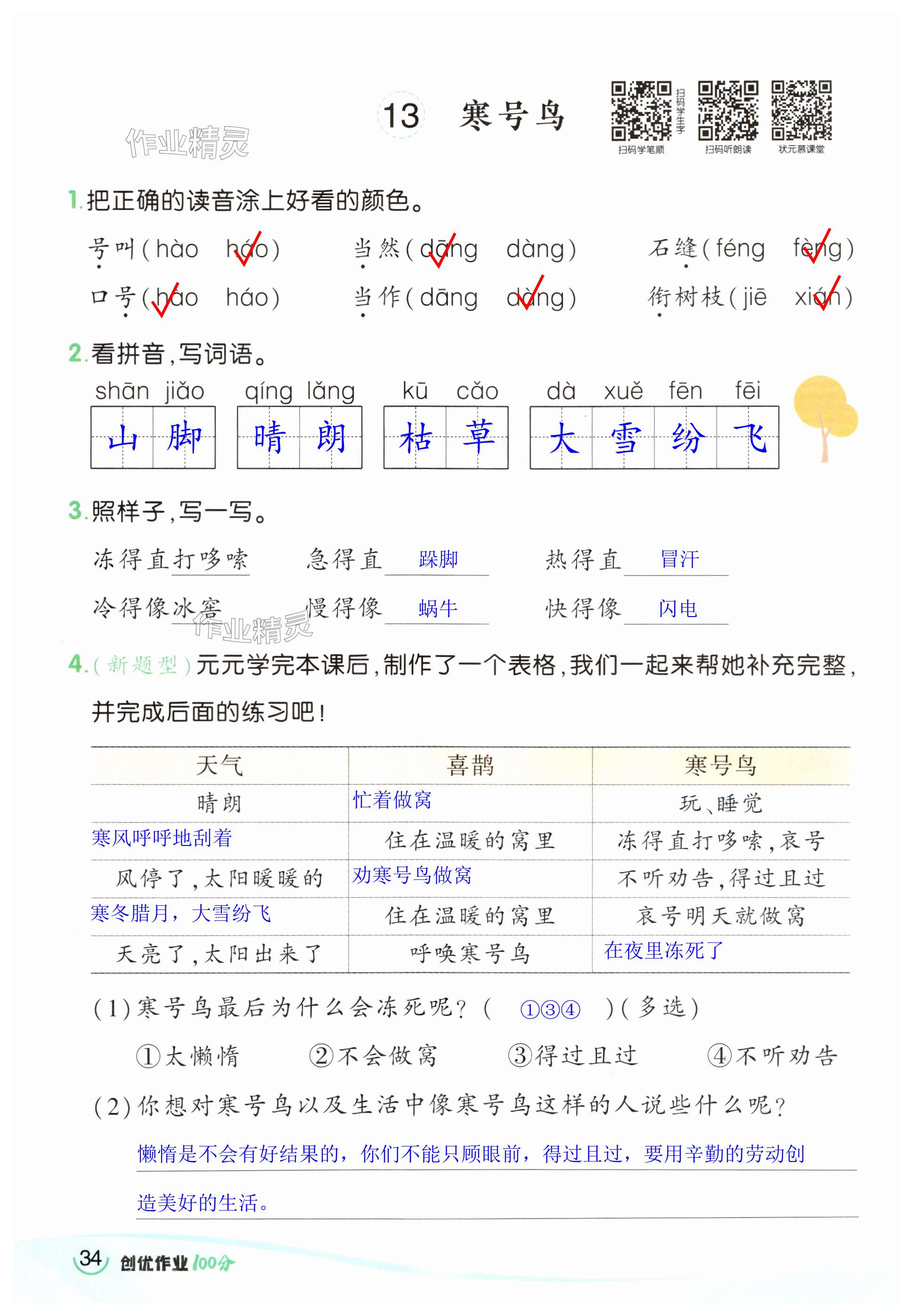 注:目前有些书本章节名称可能整理的还不是很完善,但都是按照顺序排列的,请同学们按照顺序仔细查找。练习册 2024年状元成才路创优作业100分二年级语文上册人教版浙江专版 答案主要是用来给同学们做完题方便对答案用的,请勿直接抄袭。