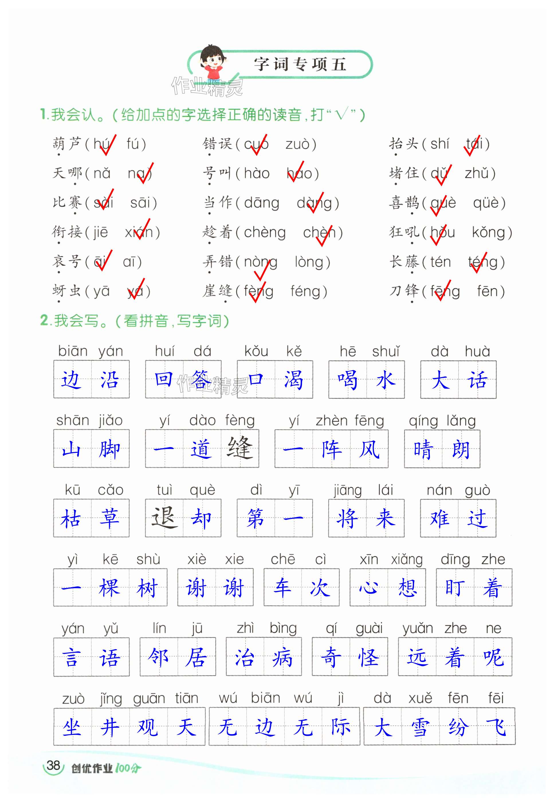 注:目前有些书本章节名称可能整理的还不是很完善,但都是按照顺序排列的,请同学们按照顺序仔细查找。练习册 2024年状元成才路创优作业100分二年级语文上册人教版浙江专版 答案主要是用来给同学们做完题方便对答案用的,请勿直接抄袭。