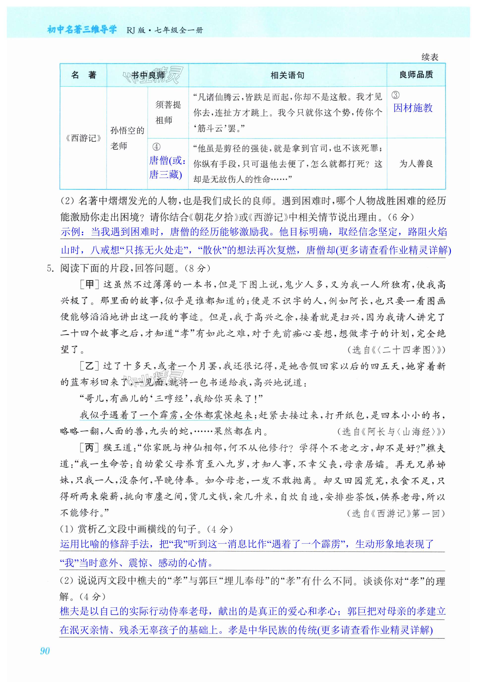 注:目前有些书本章节名称可能整理的还不是很完善,但都是按照顺序排列的,请同学们按照顺序仔细查找。练习册 2024年初中名著三维导学七年级全一册人教版 答案主要是用来给同学们做完题方便对答案用的,请勿直接抄袭。