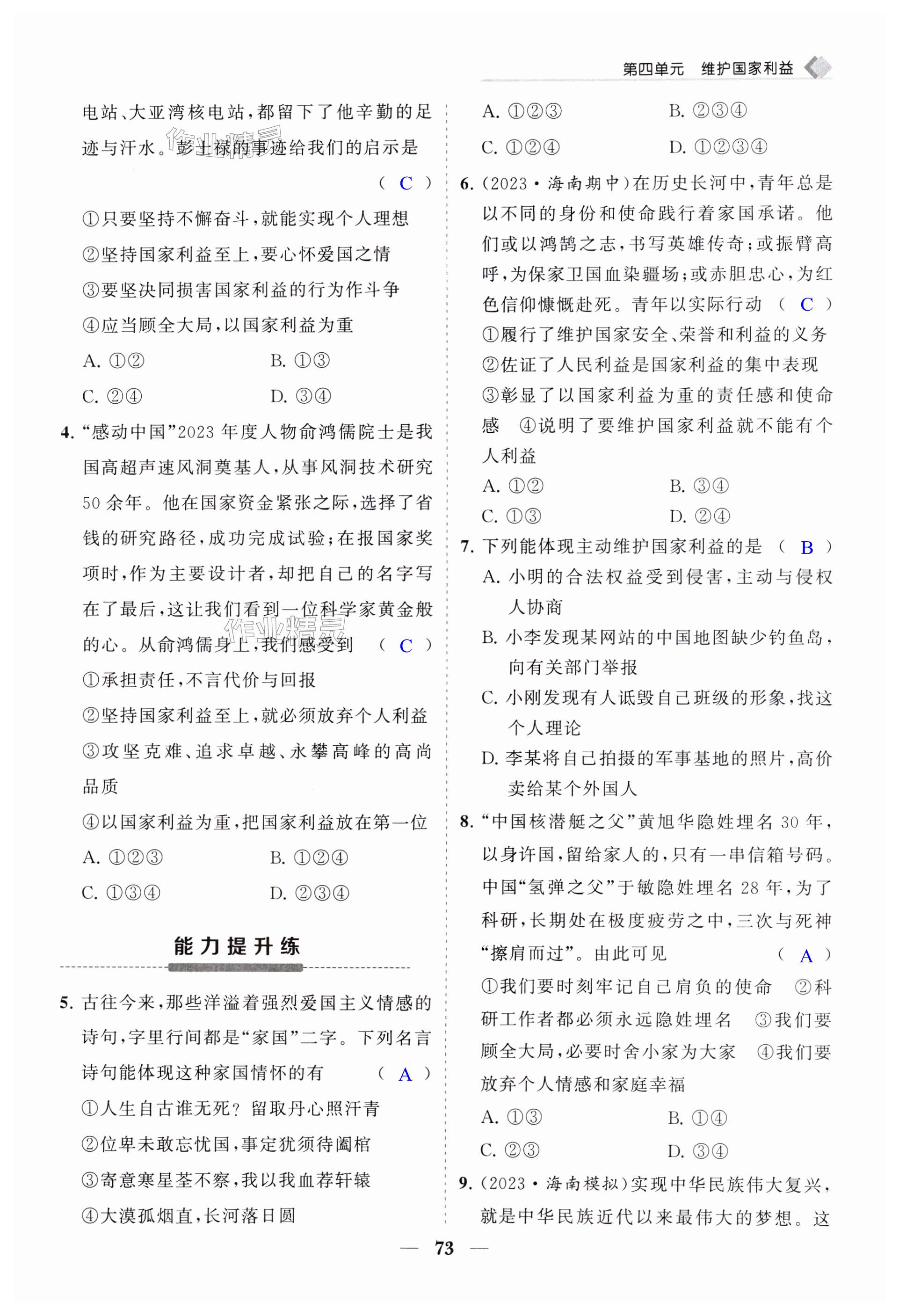 注:目前有些书本章节名称可能整理的还不是很完善,但都是按照顺序排列的,请同学们按照顺序仔细查找。练习册 2024年新课程同步练习册八年级道德与法治上册人教版 答案主要是用来给同学们做完题方便对答案用的,请勿直接抄袭。