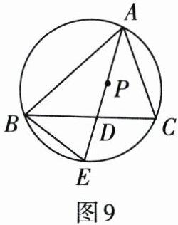 1. 已知:如图9,P是△ABC的内心,过P点作△ABC的外接圆的弦AE,交BC于D点.