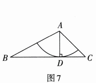 3. 如图7,在△ABC中,AB= 2,AC= $\sqrt{2}$,以A为圆心,1为半径的圆与边BC相切于点D,则∠BAC的度数是______度.