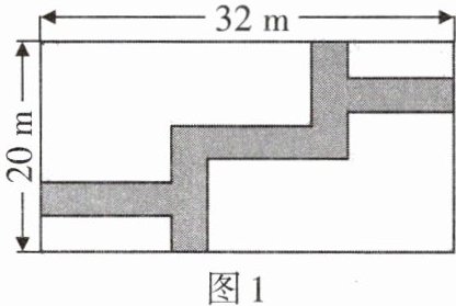 3. 如图1,在宽为20米、长为32米的矩形地面上修筑同样宽的道路(图中阴影部分),余下部分种植草坪. 要使草坪的面积为540平方米,设道路的宽为x米,则可列方程为( )