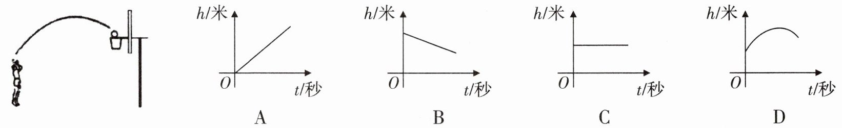 4. 一位篮球运动员站在罚球线后投篮,球入篮得分. 下列图象中,可以大致反映篮球出手后到入篮框这一时间段内,篮球的高度h(单位:米)与时间t(单位:秒)之间变化关系的是( )