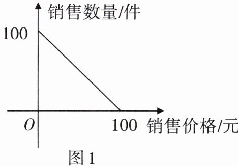 2. 某商场以每件50元的价格购进一种商品,销售中发现这种商品每天的销售数量m(单位:件)与每件的销售价格x(单位:元)满足一次函数关系,其图象如图1所示.