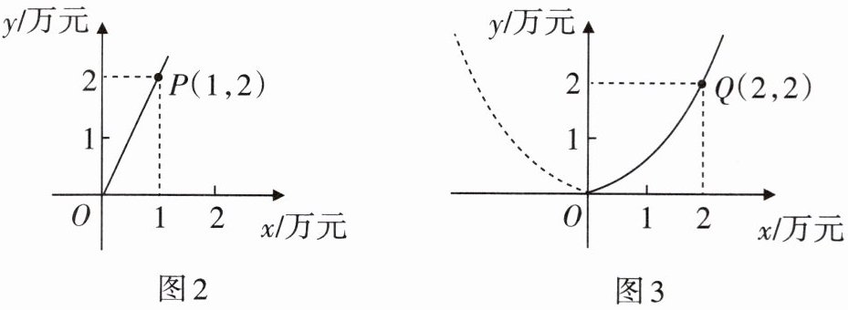 3. 某市近几年城市建设快速发展,对花木的需求量逐年增加. 某园林专业户计划投资种植花卉及树木,根据市场调查与预测,种植树木的利润$y_{1}$与投资量x成正比例关系,如图2所示;种植花卉的利润$y_{2}$与投资量x成二次函数关系,如图3所示.