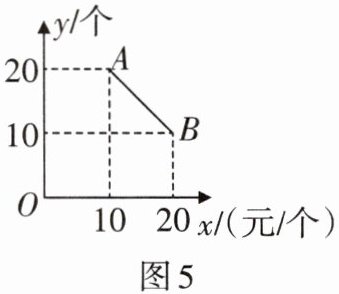 2. 食品零售店新上架一款冷饮产品,每个成本为8元,在销售过程中,每天的销售量y(单位:个)与销售价格x(单位:元/个)的关系如图5所示,当10≤x≤20时,其图象是线段AB,则该食品零售店每天销售这款冷饮产品的最大利润为______元.