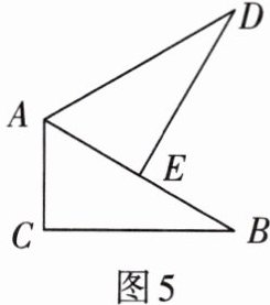 3. 如图5,$\triangle ABC\cong\triangle ADE$,$\angle C与\angle AED$都是直角,点$E在AB$上,$\angle D= 30^\circ$,那么$\triangle ABC$绕着点______逆时针方向旋转______度能与$\triangle ADE$重合.