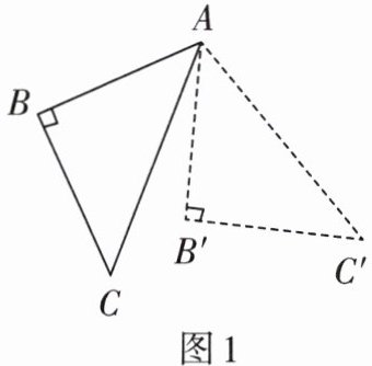 3. 如图1,在等腰直角$\triangle ABC$中,$\angle B= 90^\circ$,将$\triangle ABC绕顶点A逆时针旋转60^\circ后得到\triangle AB'C'$,则$\angle BAC'$等于( )