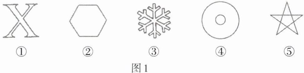 1. 如图1,下面的图形绕着一个点旋转$120^\circ$后,能与原来的图形重合的有( )