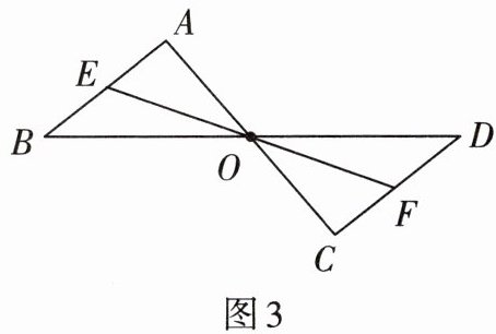 2. 如图3,△ABO与△CDO关于点O成中心对称,EF经过点O,分别交AB,CD于E,F,那么△AEO与△CFO的对称关系是______.