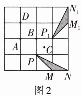 4. 如图2,4×4的正方形网格中,△MNP绕某点旋转一定的角度,得到$△M_1N_1P_1,$则其旋转中心可能是( )