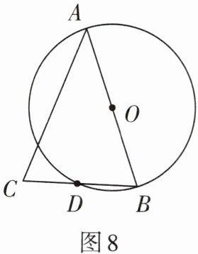 2. 如图8,AB为⊙O的直径,AB= AC,BC交⊙O于点D. 求证:BD= DC.