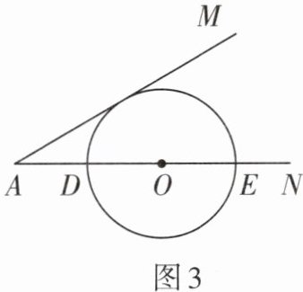 3. 如图3,∠MAN= 30°,O为边AN上一点,以点O为圆心,2为半径作⊙O,交AN边于D,E两点,则当⊙O与AM相切时,AD的长等于多少?