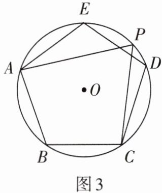 2. 如图3,已知$\odot O$是正五边形ABCDE的外接圆,点P为$\widehat{ED}$上的一点,求∠APC的度数.