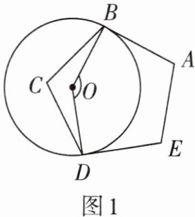 4. 如图1,$\odot O$与正五边形ABCDE的边AB、DE分别相切于点B、D,则劣弧$\widehat{BD}所对的圆心角\angle BOD$的大小为______度.