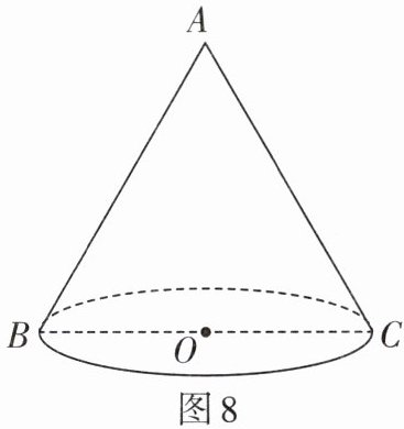 2. 如图8,已知圆锥的母线长AB= 8 cm,轴截面的顶角为60°,求圆锥的全面积(结果保留π).