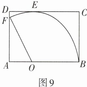 3. 如图9,矩形ABCD中,AB= 18 cm,AD= 12 cm,以AB上一点O为圆心,OB长为半径画$\widehat{BF}$恰与DC边相切,交AD于F点,连接OF. 若将这个扇形OBF围成一个圆锥,求这个圆锥的底面积S(结果保留π).