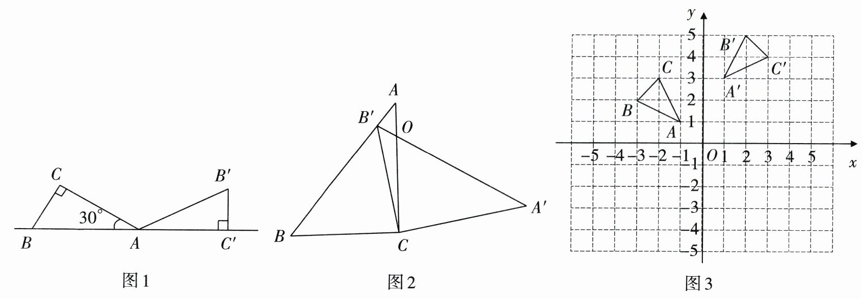 3. 如图1,将一个含30°角的直角三角板ABC绕点A旋转,使得点B,A,C'在同一条直线上,则三角板ABC旋转的角度是( )