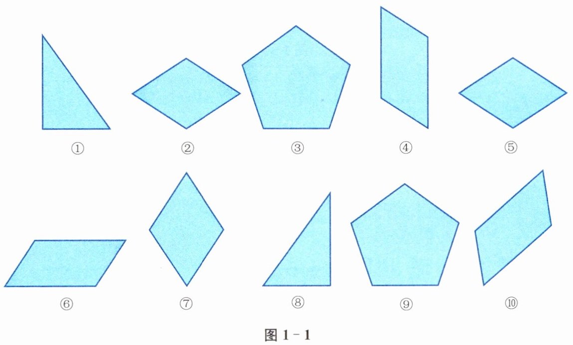 (1)观察图1-1中的图形,从中找出全等图形.