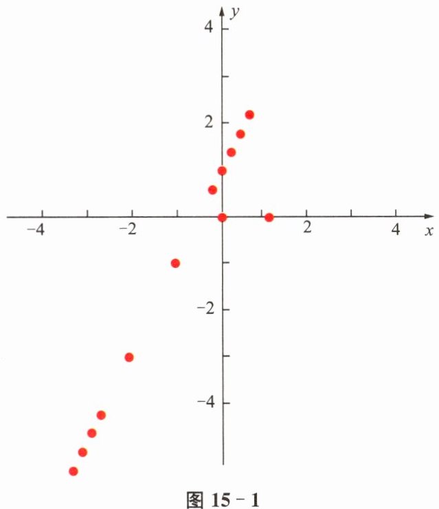 (1)填表,并以表中各对 $x$、$y$ 的值为点的坐标,利用动态几何软件建立直角坐标系并构造这些点,如图 15-1.
