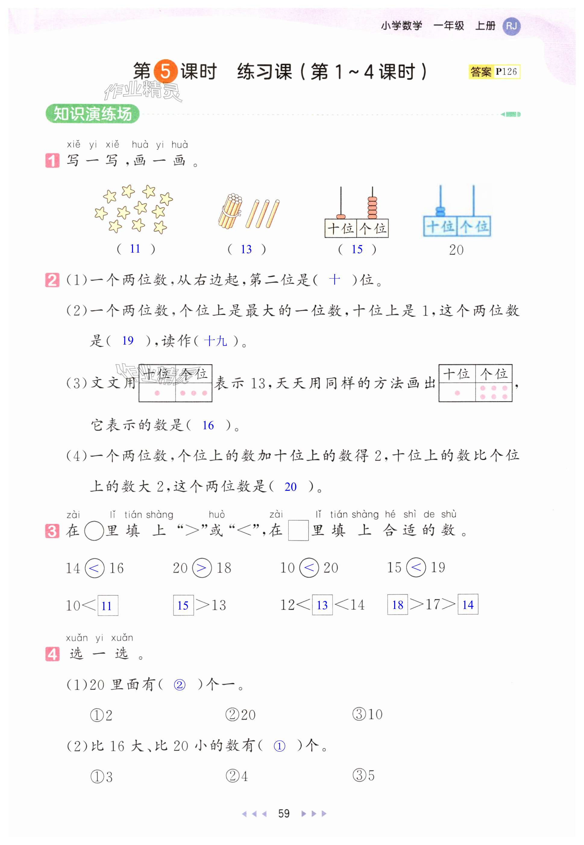 注:目前有些书本章节名称可能整理的还不是很完善,但都是按照顺序排列的,请同学们按照顺序仔细查找。练习册 2024年53天天练一年级数学上册人教版 答案主要是用来给同学们做完题方便对答案用的,请勿直接抄袭。