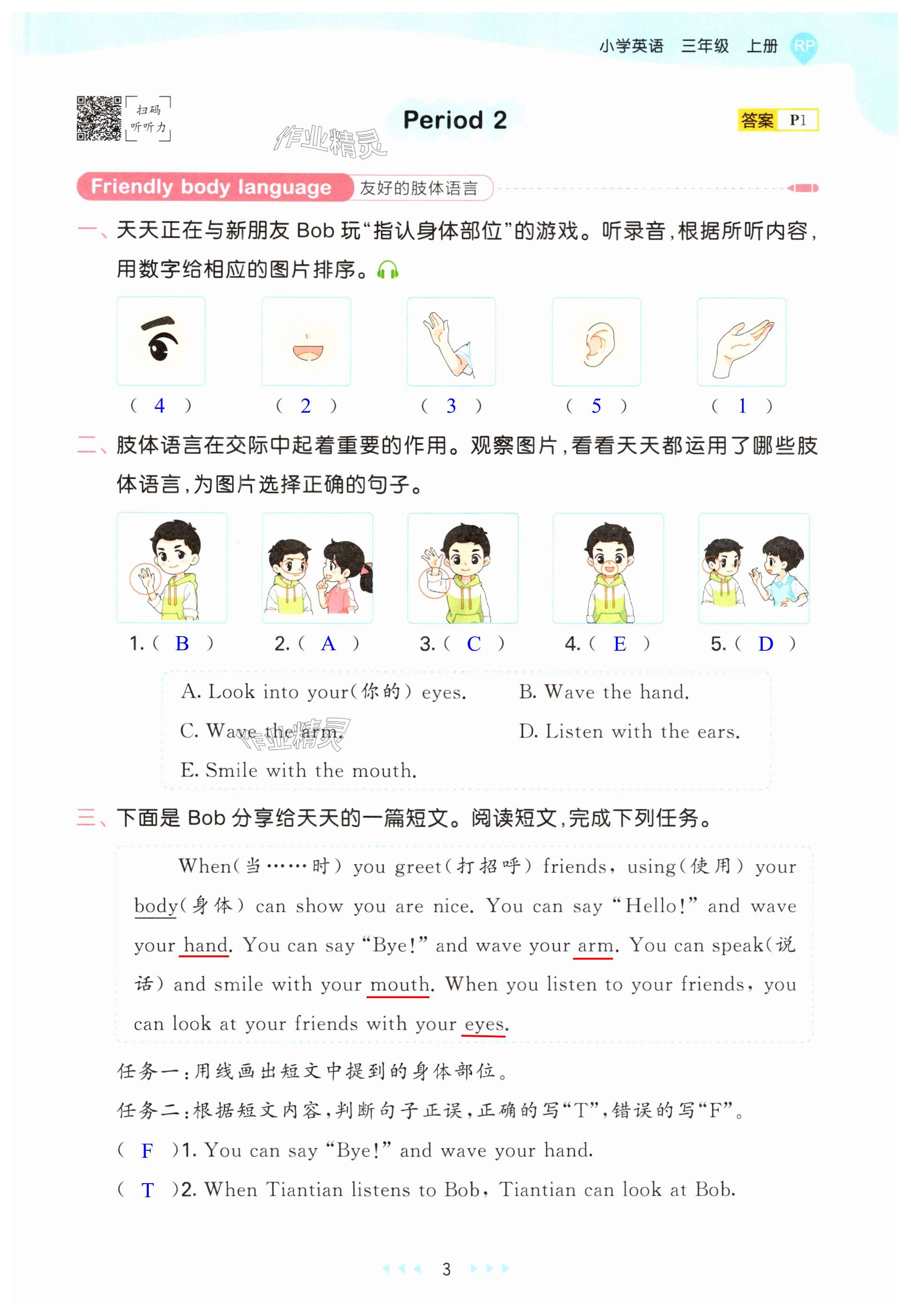 注:目前有些书本章节名称可能整理的还不是很完善,但都是按照顺序排列的,请同学们按照顺序仔细查找。练习册 2024年53天天练三年级英语上册人教版 答案主要是用来给同学们做完题方便对答案用的,请勿直接抄袭。