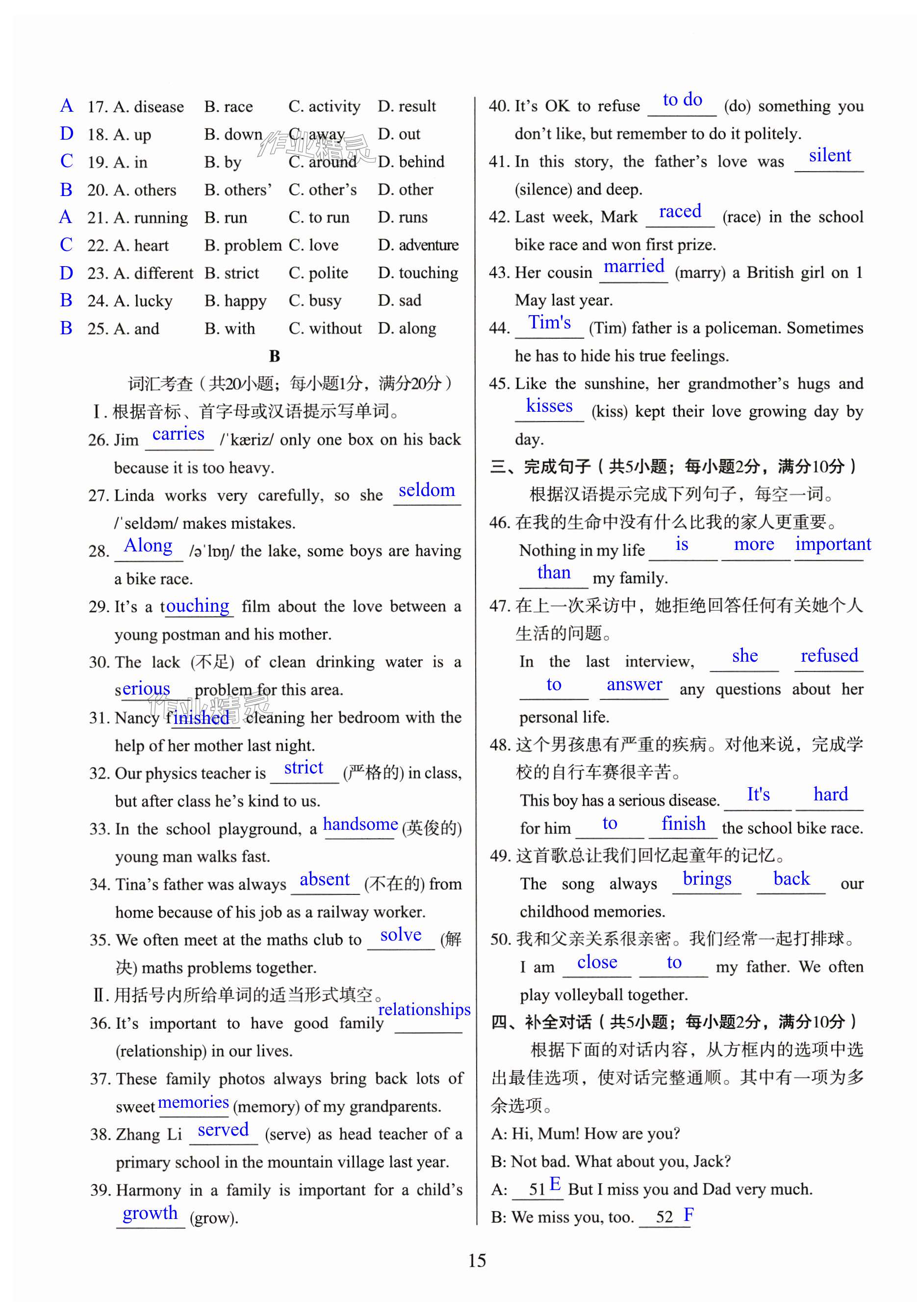 相关练习册答案
