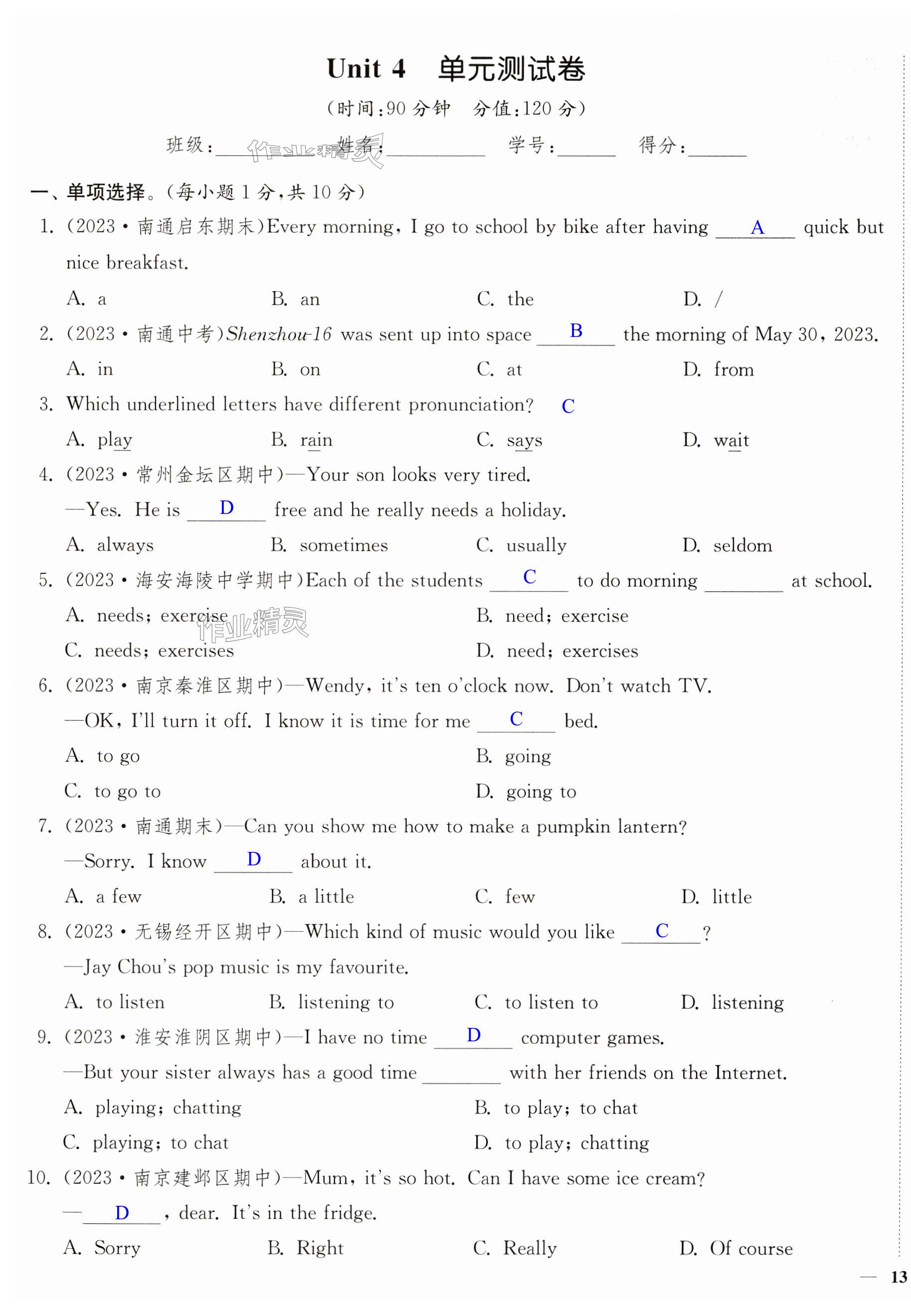 注:目前有些书本章节名称可能整理的还不是很完善,但都是按照顺序排列的,请同学们按照顺序仔细查找。练习册 2024年南通小题课时作业本七年级英语上册译林版 答案主要是用来给同学们做完题方便对答案用的,请勿直接抄袭。