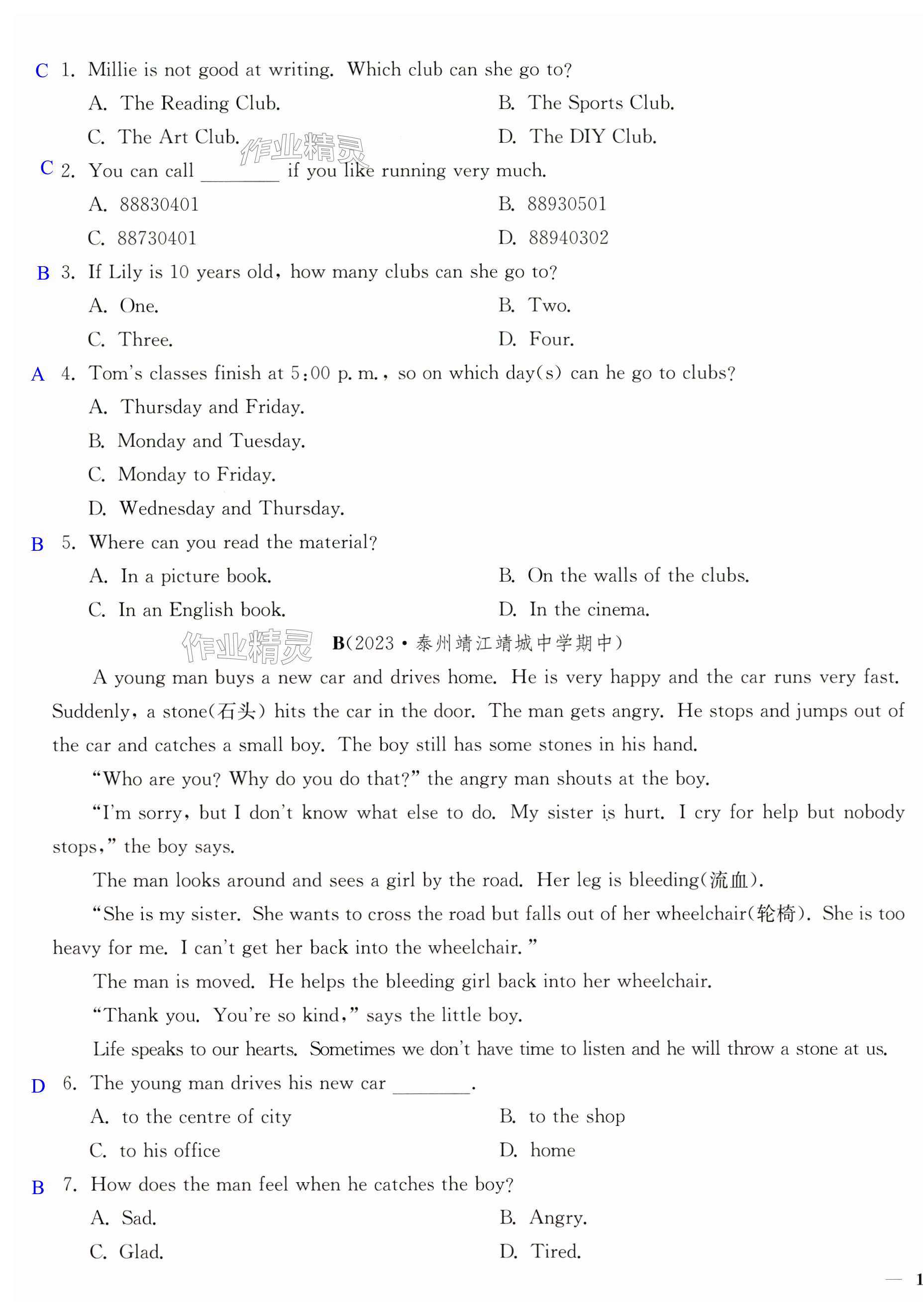 注:目前有些书本章节名称可能整理的还不是很完善,但都是按照顺序排列的,请同学们按照顺序仔细查找。练习册 2024年南通小题课时作业本七年级英语上册译林版 答案主要是用来给同学们做完题方便对答案用的,请勿直接抄袭。