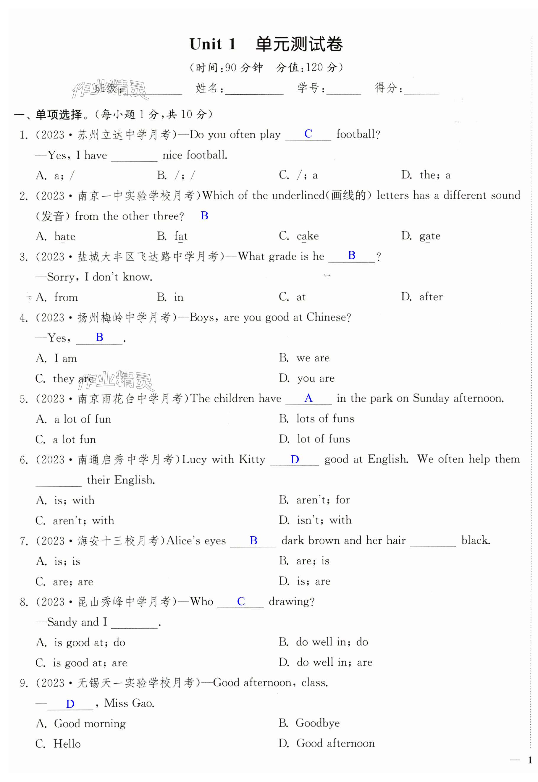 注:目前有些书本章节名称可能整理的还不是很完善,但都是按照顺序排列的,请同学们按照顺序仔细查找。练习册 2024年南通小题课时作业本七年级英语上册译林版 答案主要是用来给同学们做完题方便对答案用的,请勿直接抄袭。