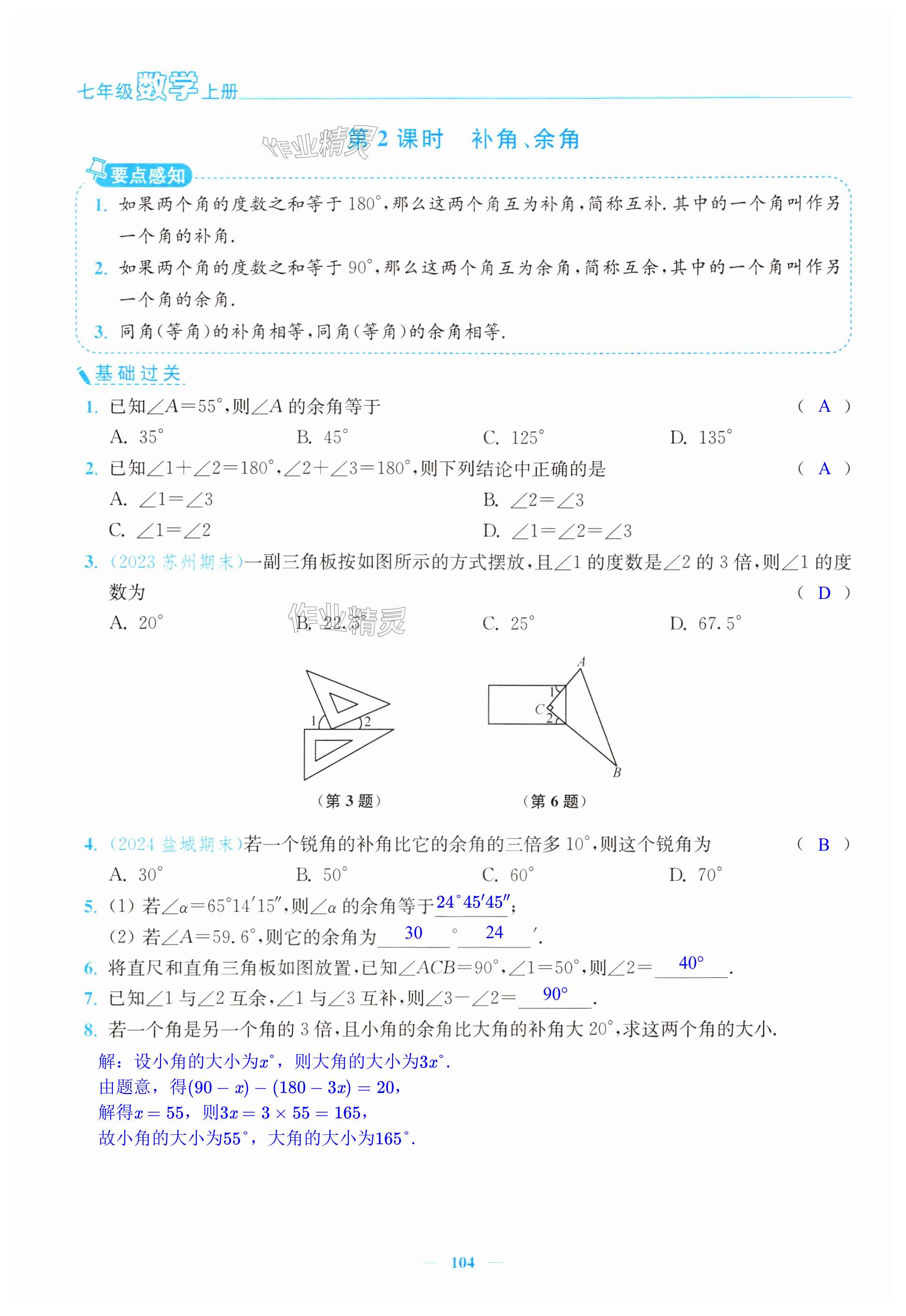 注:目前有些书本章节名称可能整理的还不是很完善,但都是按照顺序排列的,请同学们按照顺序仔细查找。练习册 2024年南通小题课时作业本七年级数学上册苏科版 答案主要是用来给同学们做完题方便对答案用的,请勿直接抄袭。