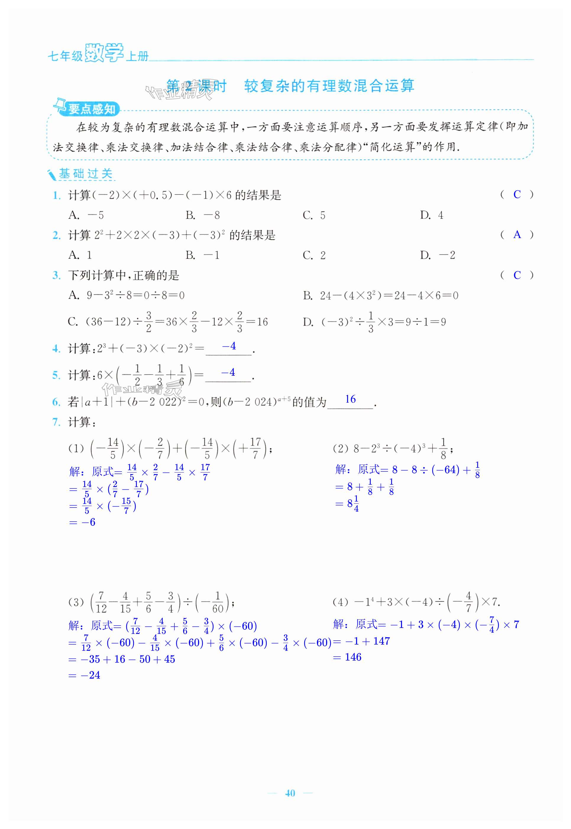 注:目前有些书本章节名称可能整理的还不是很完善,但都是按照顺序排列的,请同学们按照顺序仔细查找。练习册 2024年南通小题课时作业本七年级数学上册苏科版 答案主要是用来给同学们做完题方便对答案用的,请勿直接抄袭。