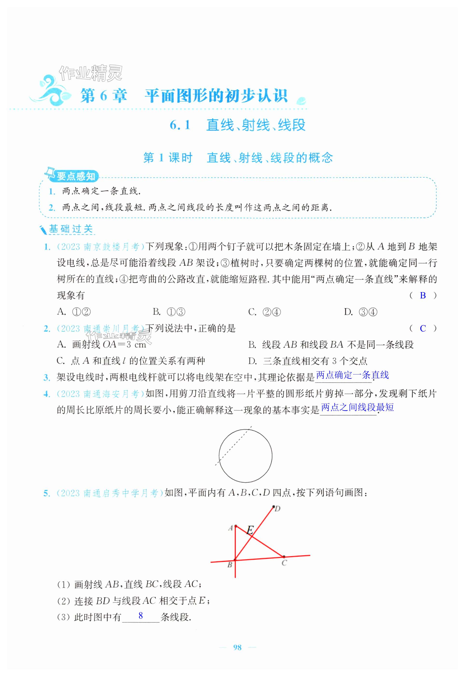 注:目前有些书本章节名称可能整理的还不是很完善,但都是按照顺序排列的,请同学们按照顺序仔细查找。练习册 2024年南通小题课时作业本七年级数学上册苏科版 答案主要是用来给同学们做完题方便对答案用的,请勿直接抄袭。